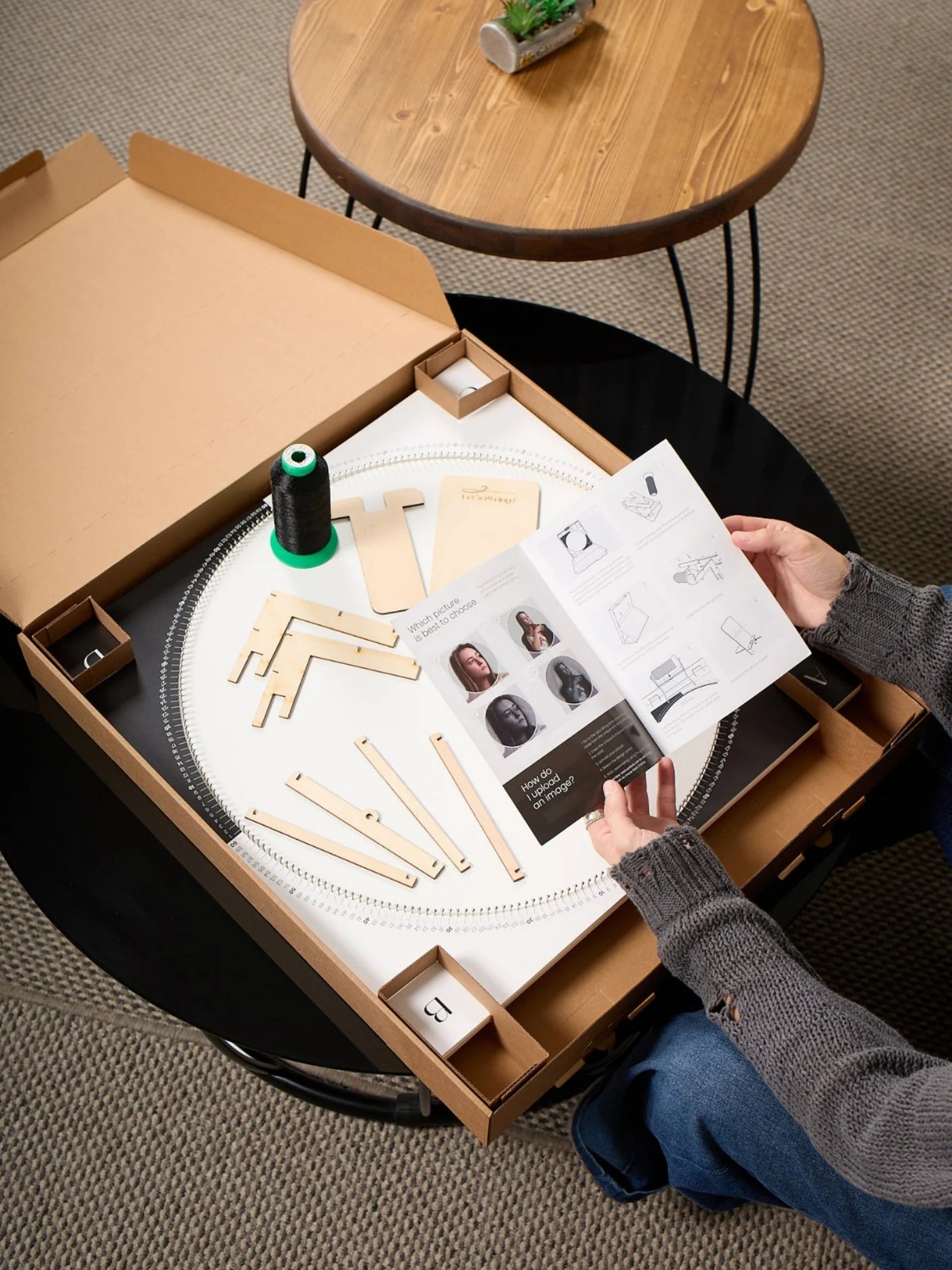 Adım adım ilerlemeden önce kutudaki tüm parçaları kontrol et: pano, iğneler, ipler ve aparatlar eksiksiz mi bak.